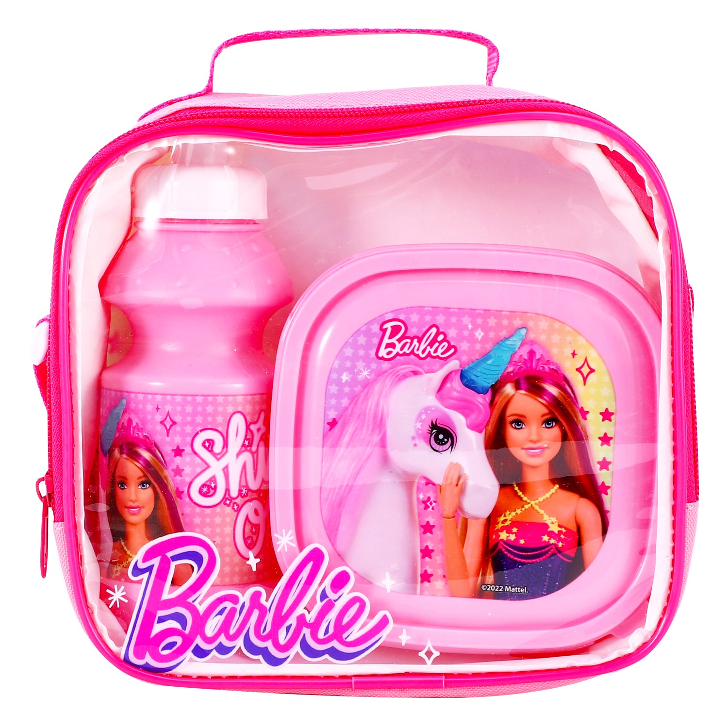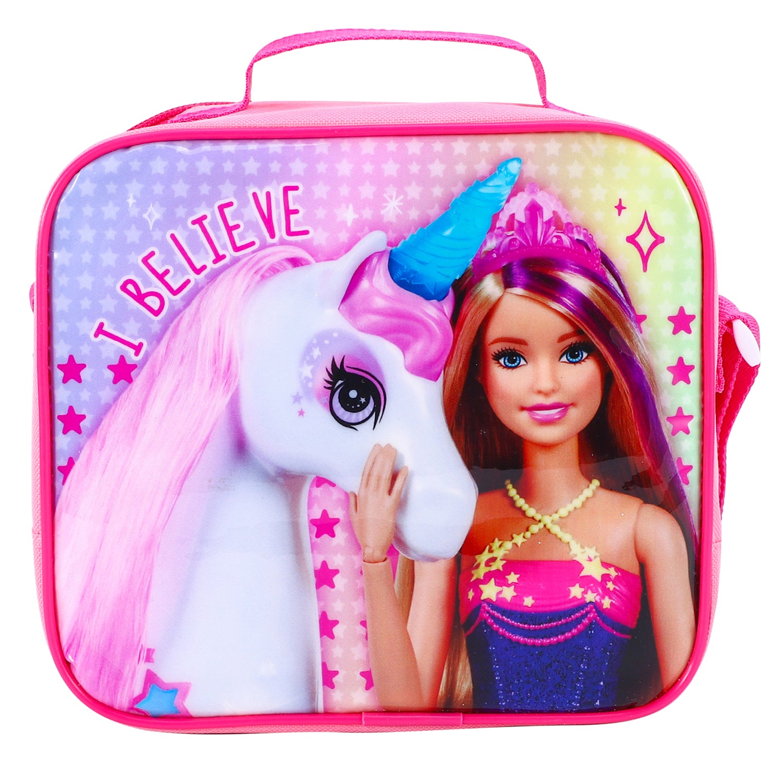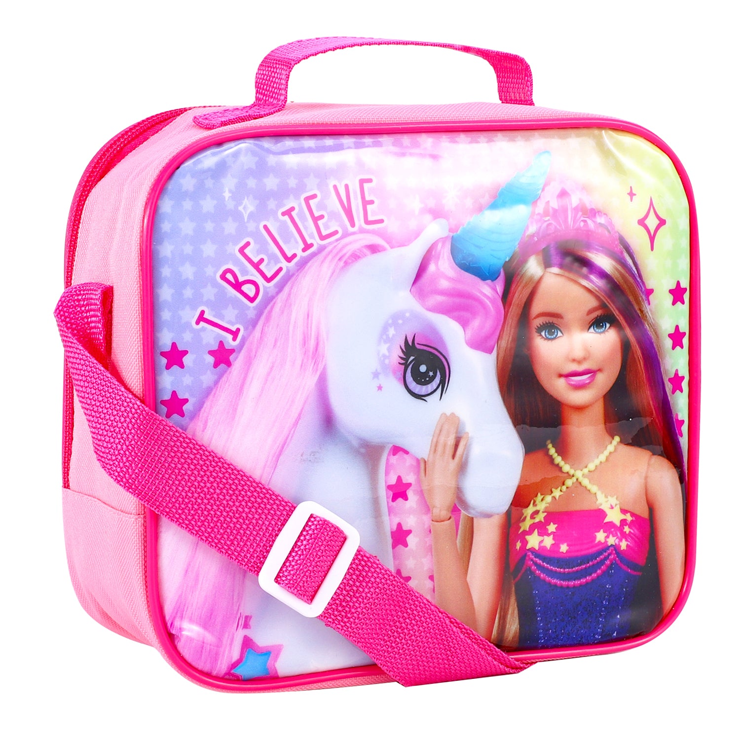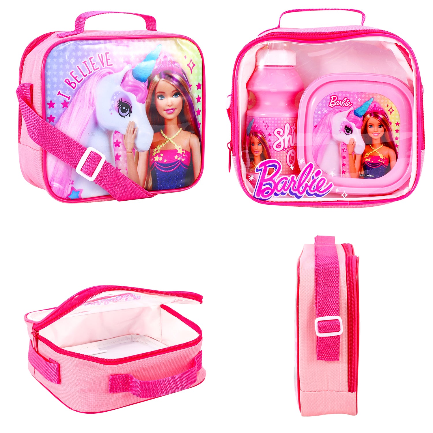 Add some magic to lunchtime with our Barbie Unicorn 3 Piece Insulated Lunch Bag Set. Keep meals cool and organized in style with the beautiful Barbie Doll Unicorn design. Perfect for any young fashionista. Lunchtime just got more enchanting!