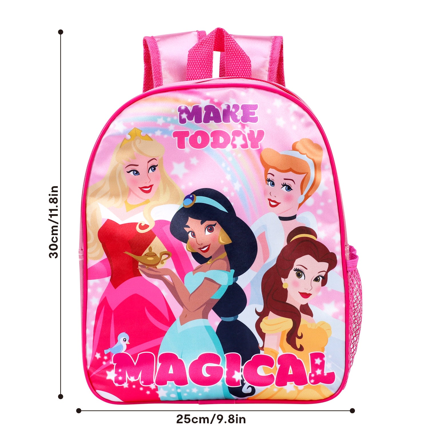 Add some magic to your day with our Disney Princess "Make Today Magic" backpack! Made from satin fabric, it features Rapunzel, Jasmine, Cinderella, and Belle. Feel like a true princess while carrying your essentials. Perfect for any Disney lover.