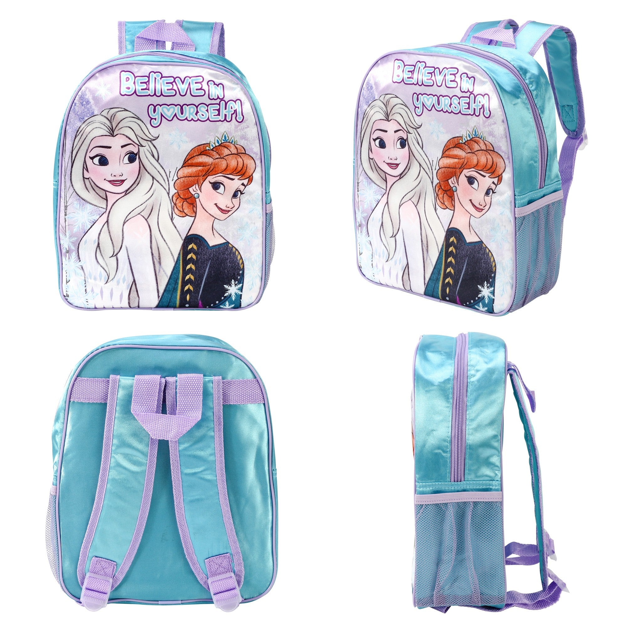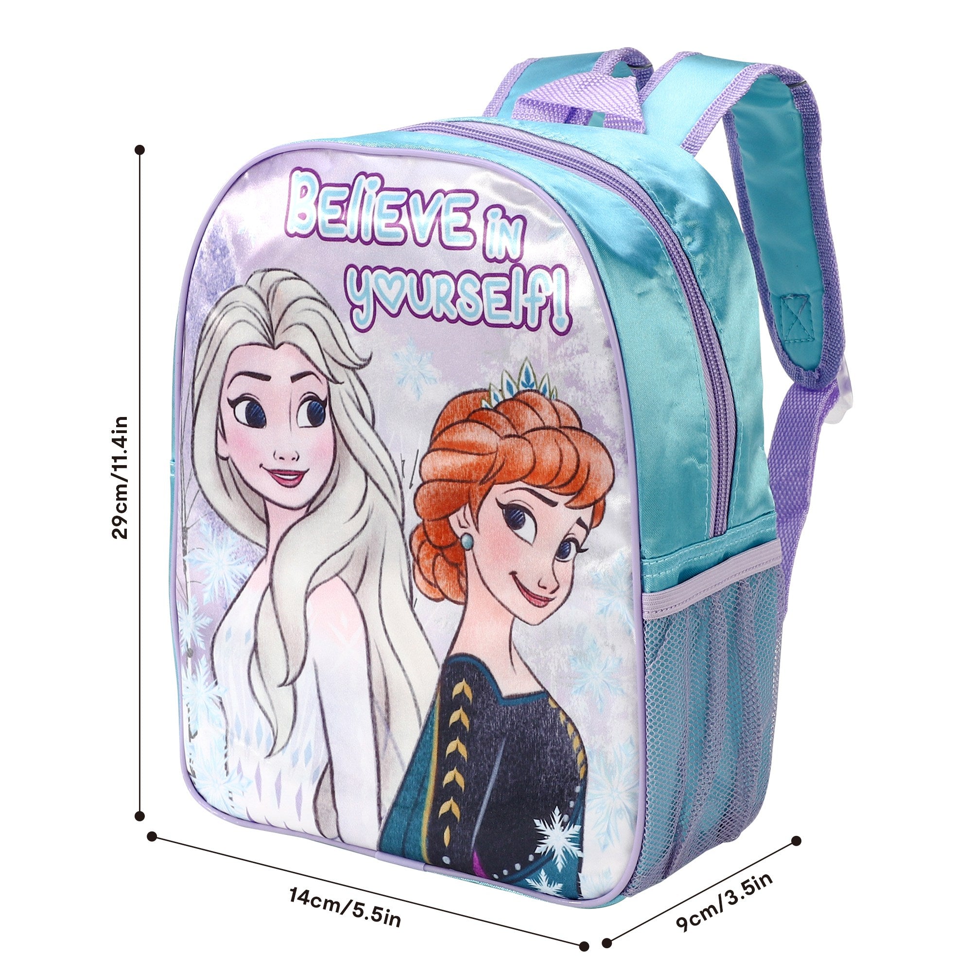 Believe in magic with this Frozen backpack! Made from soft satin fabric in shades of blue and purple, this backpack is perfect for kids who want to carry their essentials in style. With a playful print of the iconic "Believe In Yourself" slogan, this backpack is sure to bring a smile to any Frozen fan's face.