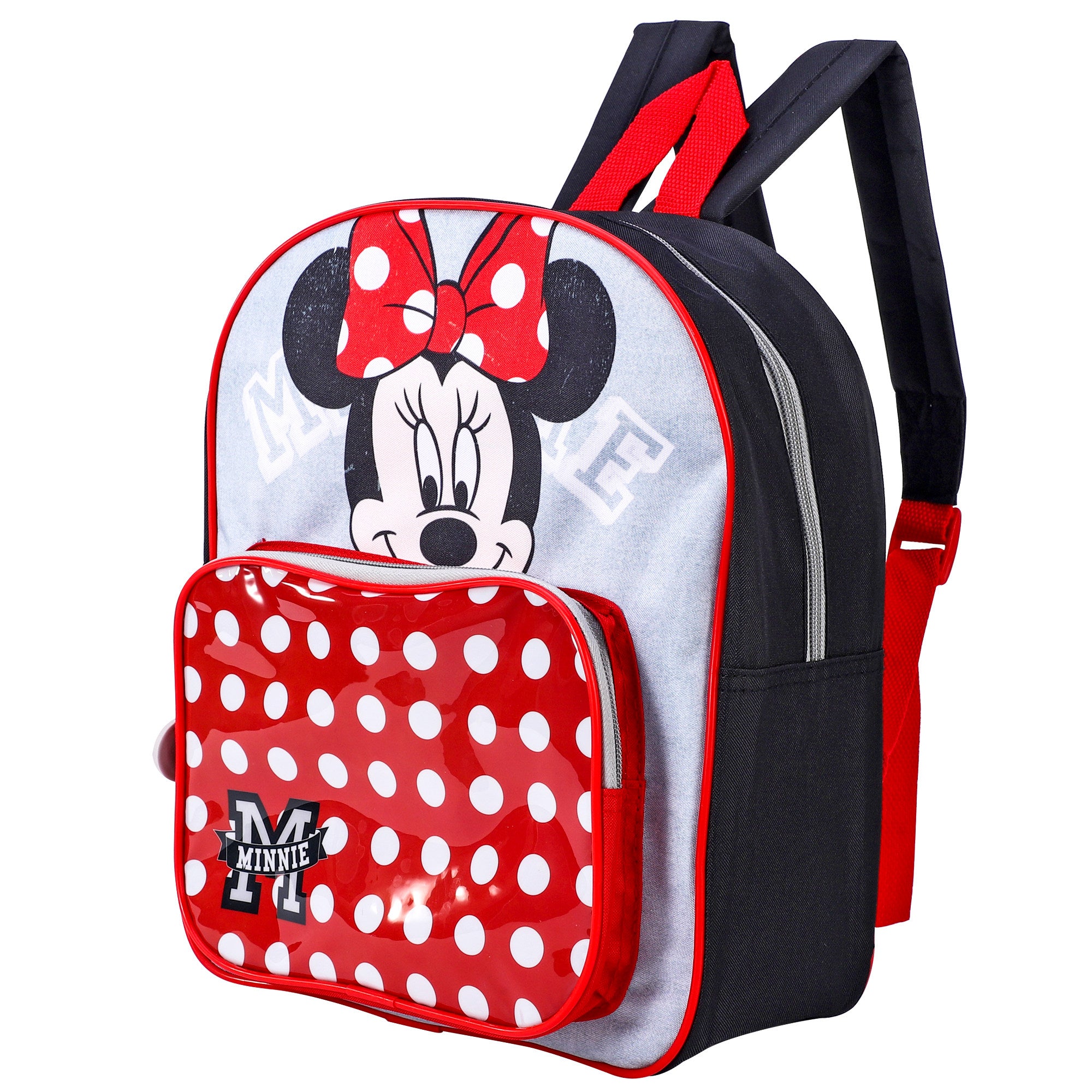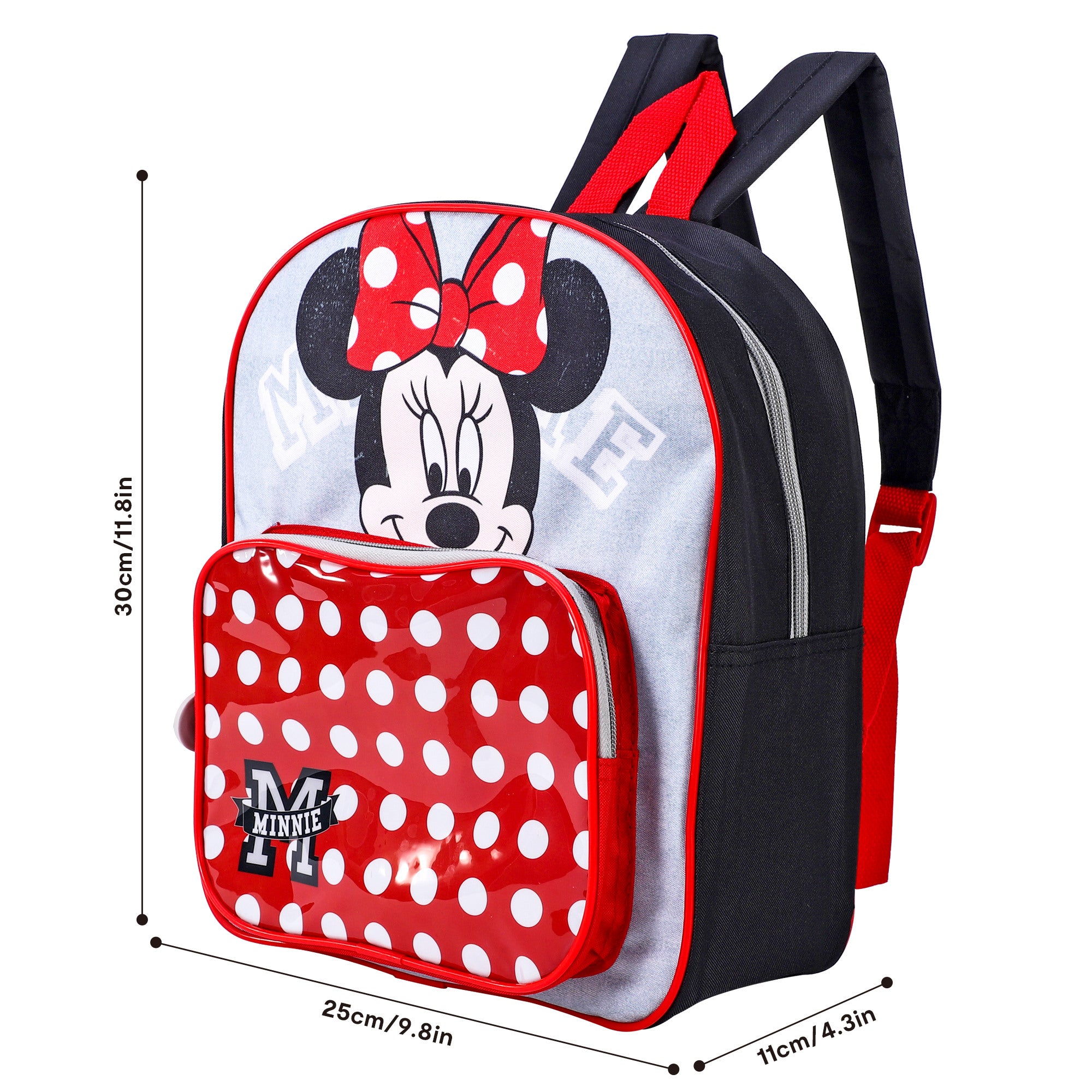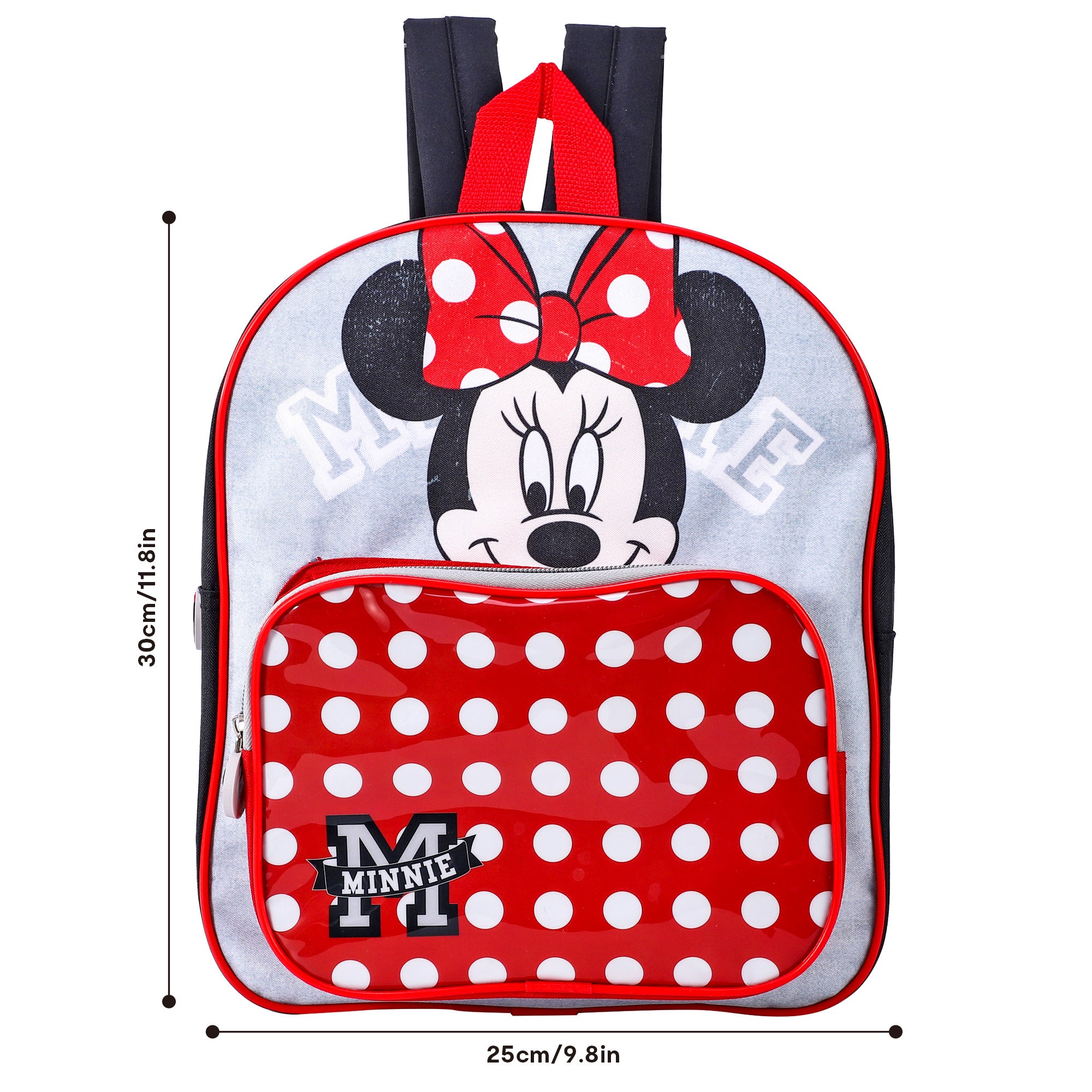 Take your style to the next level with our Minnie Mouse Premium Luxury Backpack. In classic red and white polka dot, this backpack has one large compartment and a see-through front pocket. With easily adjustable padded straps for comfort, you'll be the envy of all your friends.