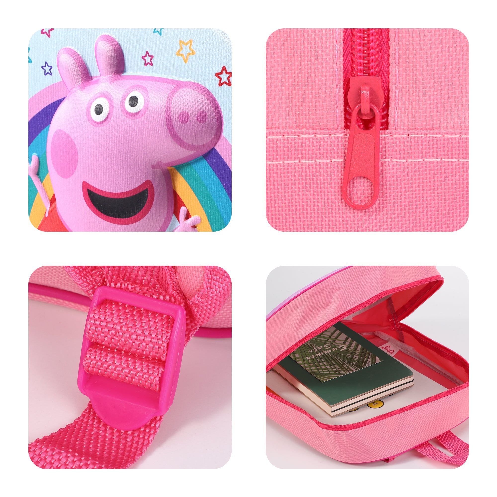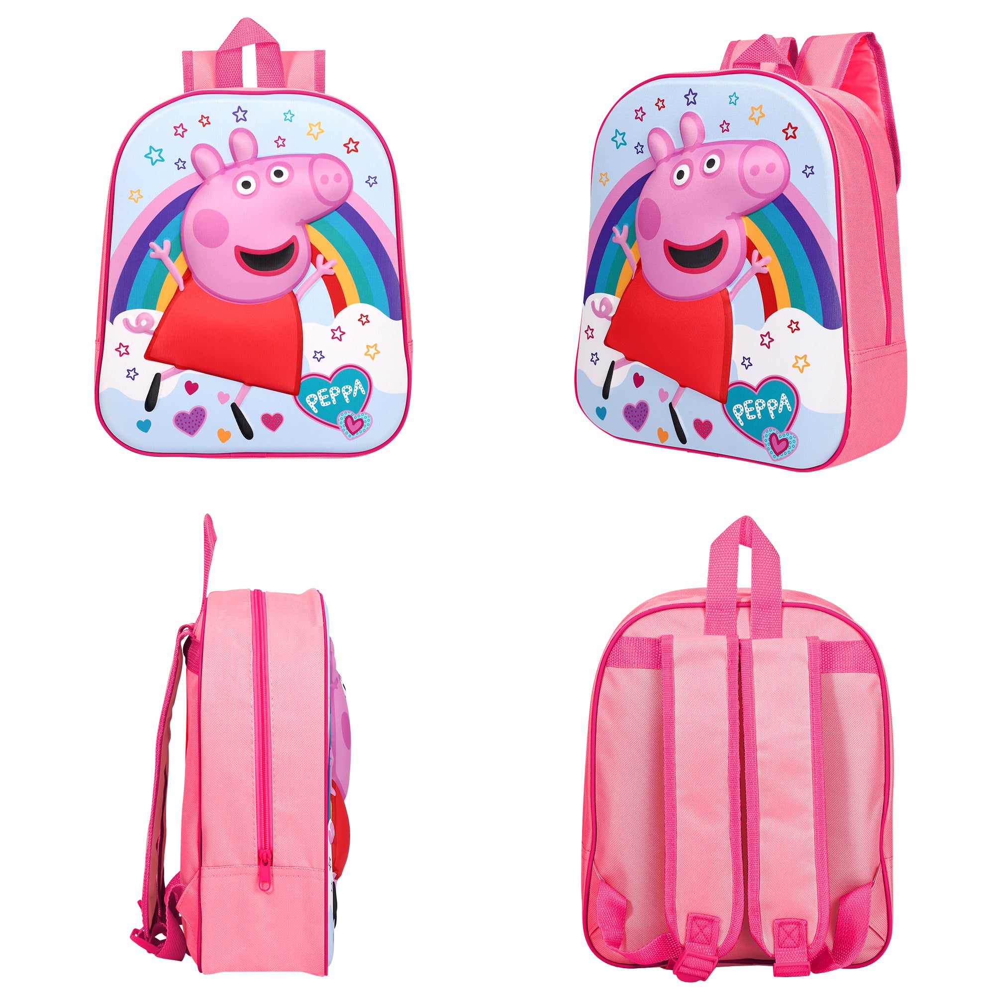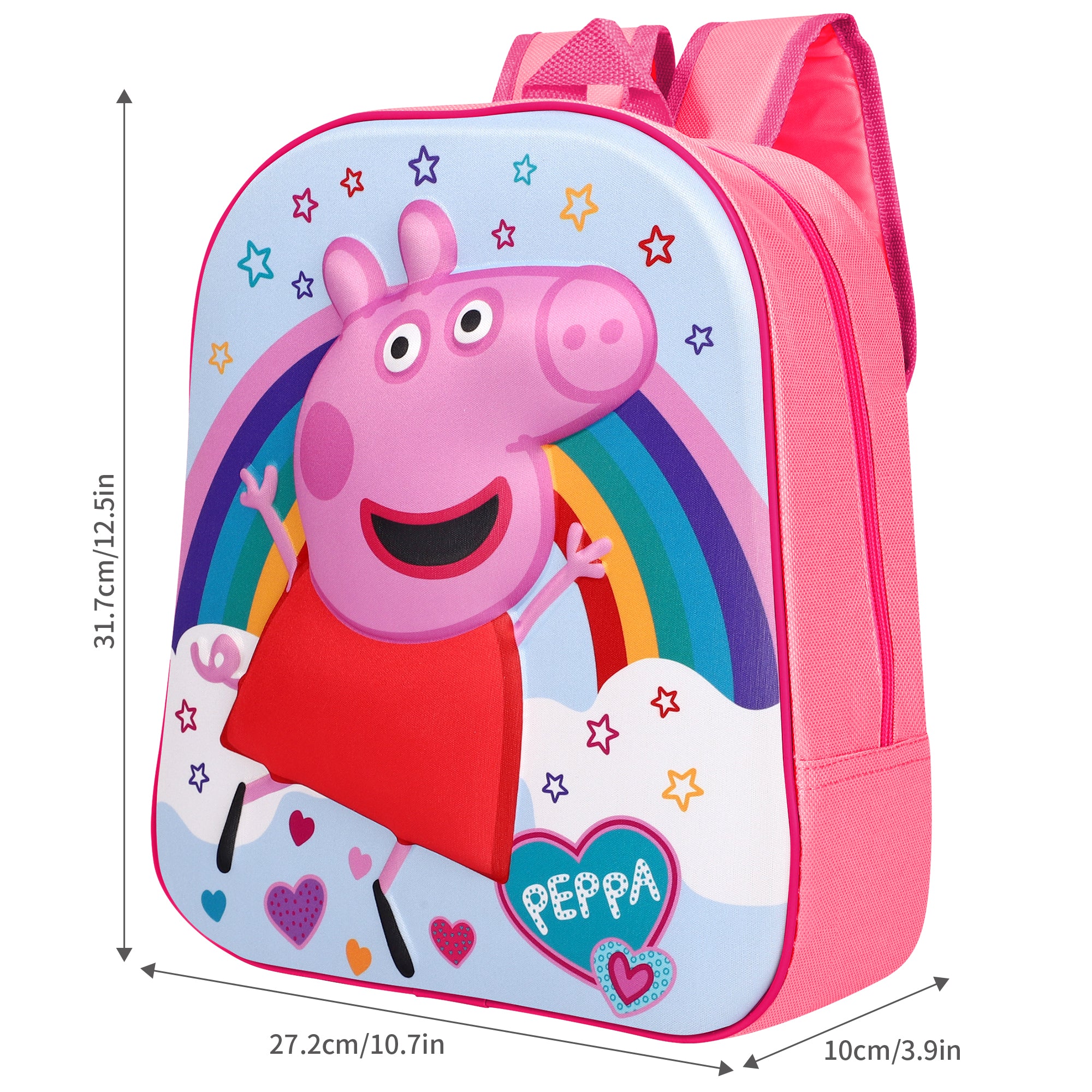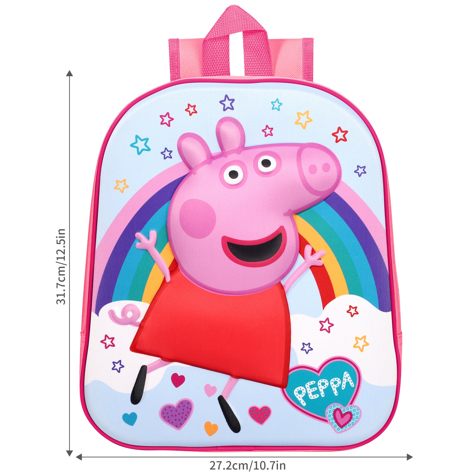 Make a bold statement with the Peppa Pig "Peppa" 3D Eva Backpack! This unique backpack features a playful and colorful Peppa Pig design, complete with a rainbow. Perfect for little ones who want to stand out while carrying their essentials. Say goodbye to boring backpacks with this fun and quirky 3D Eva Backpack!