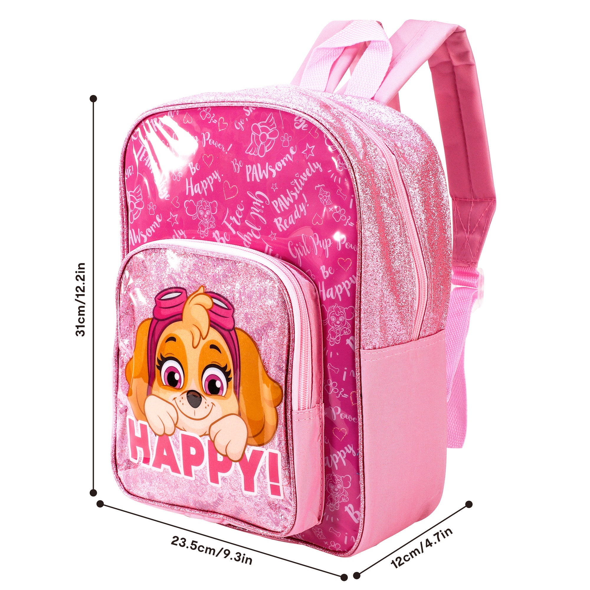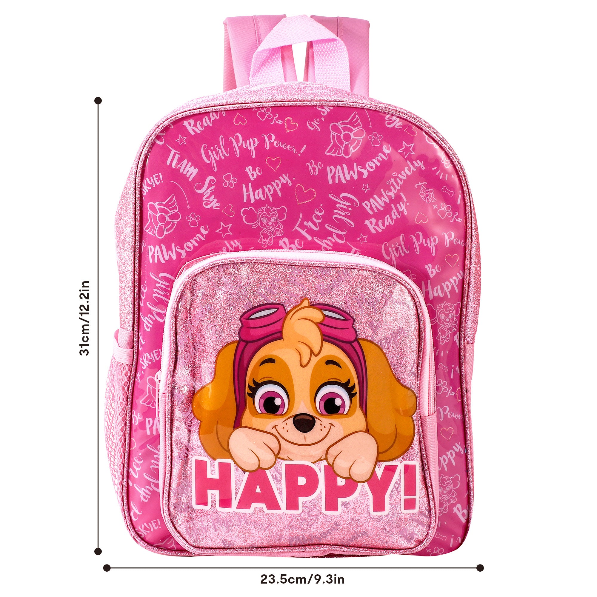 This "Happy" Deluxe Backpack is perfect for little Paw Patrol fans! With a playful pink design featuring Skye, it's sure to bring a smile to any little girl's face. The deluxe size offers plenty of room for all their essentials, making it great for school, travel, or playdates. Let Skye join in on the fun with this adorable backpack!