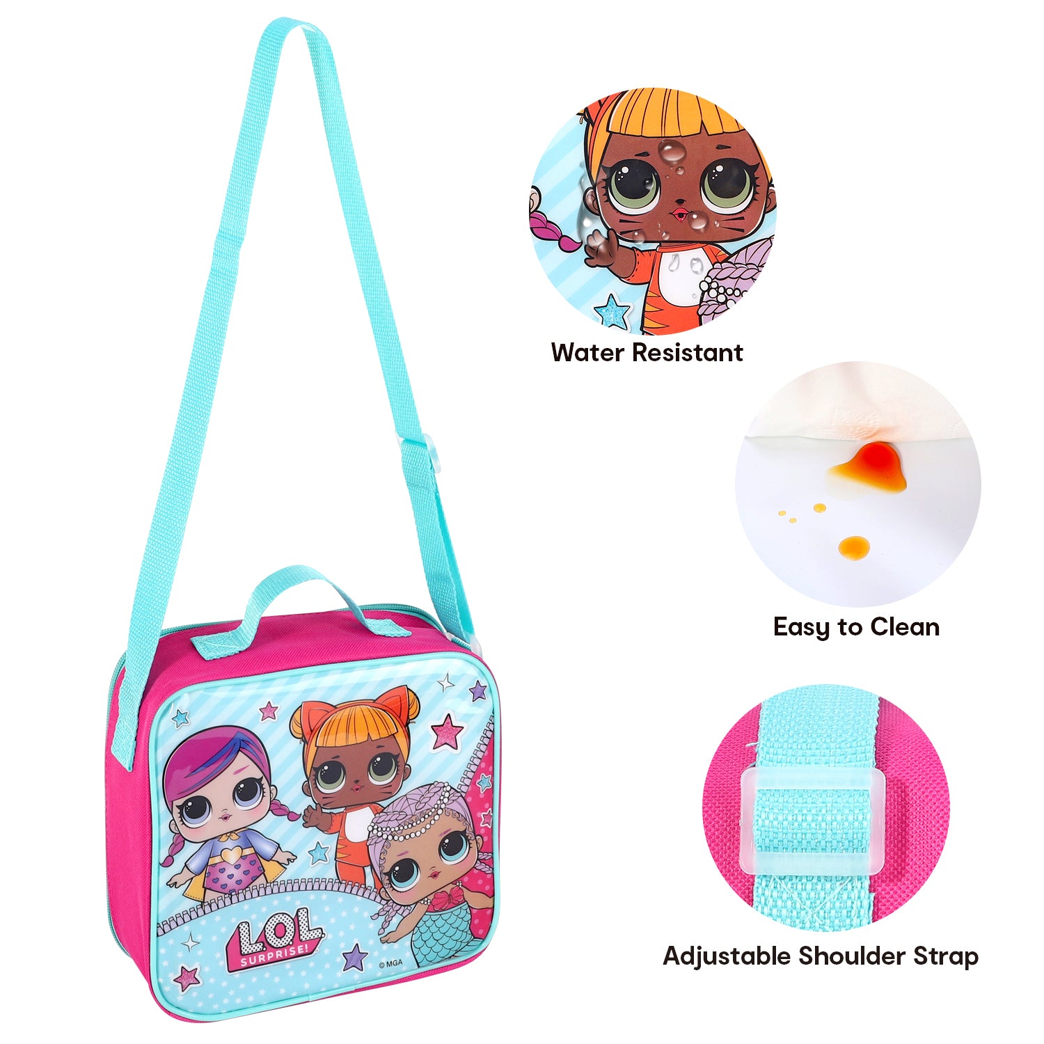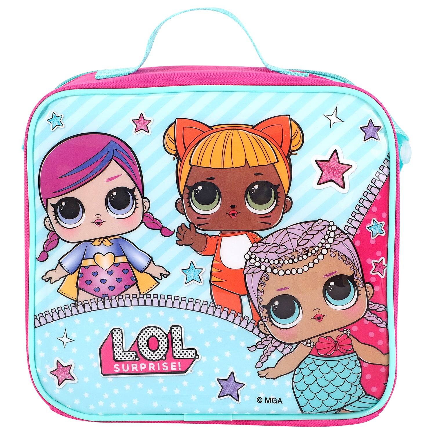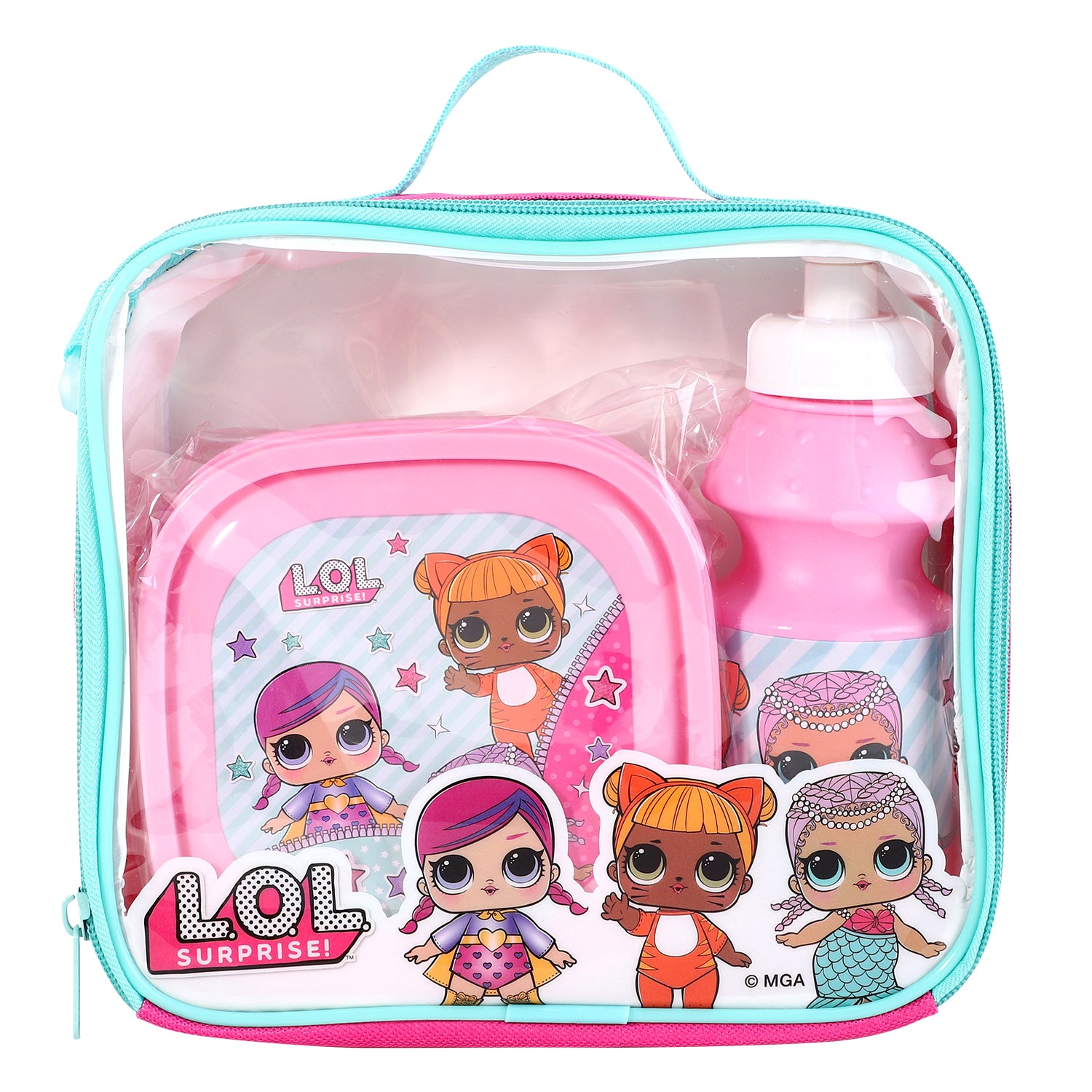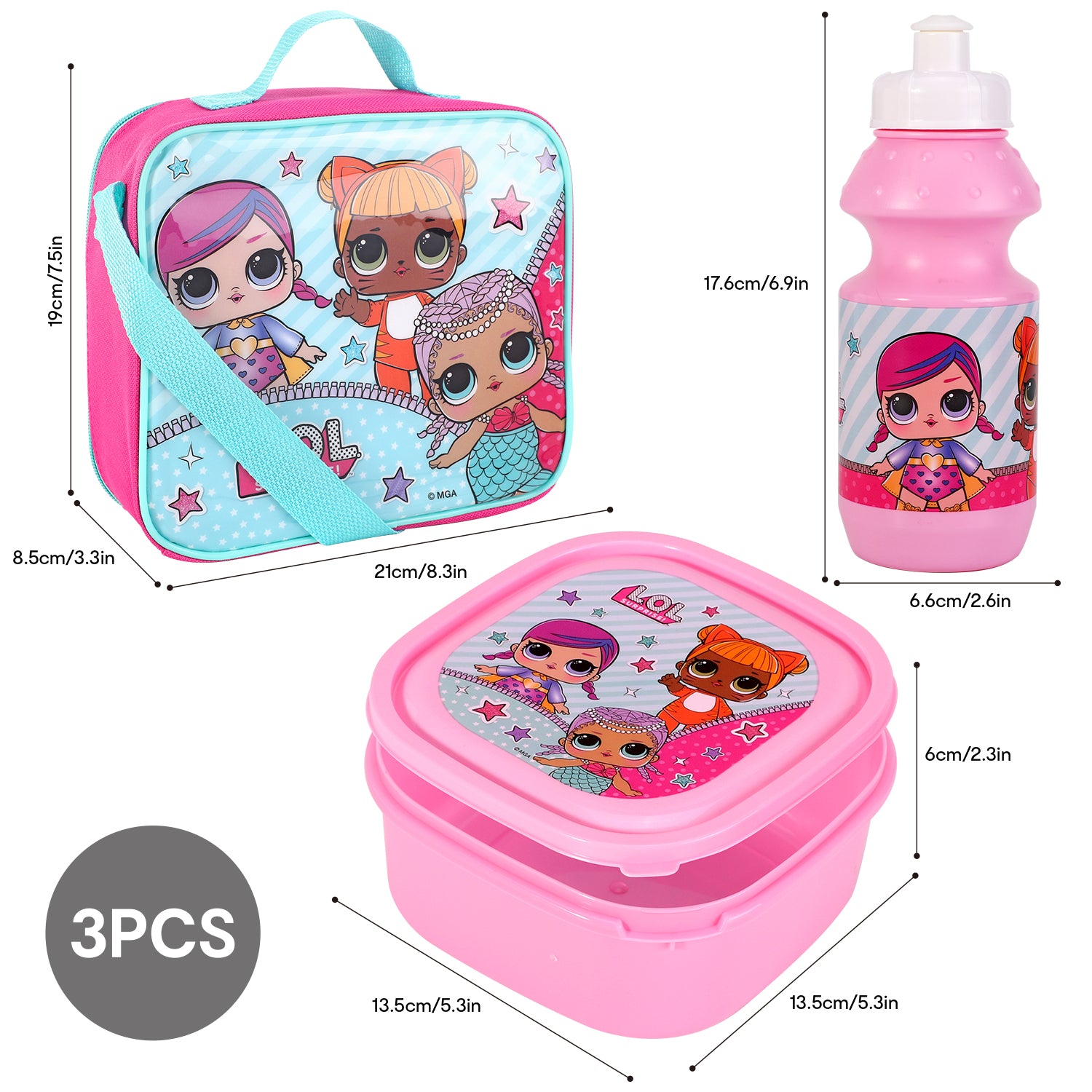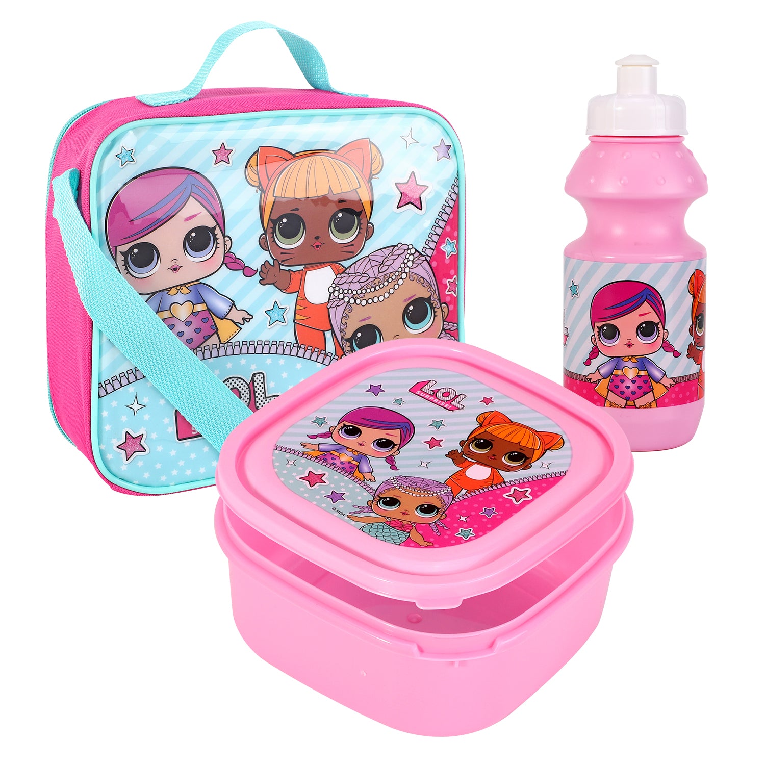Get ready to be surprised and delighted with the LOL Surprise 3 Piece Insulated Lunch Bag Set! This set includes an insulated lunch bag, sandwich box, and sports bottle, all featuring your favourite LOL Surprise dolls. Keep your lunch fresh and cool while showing off your style. Perfect for school, work, or on-the-go fun!