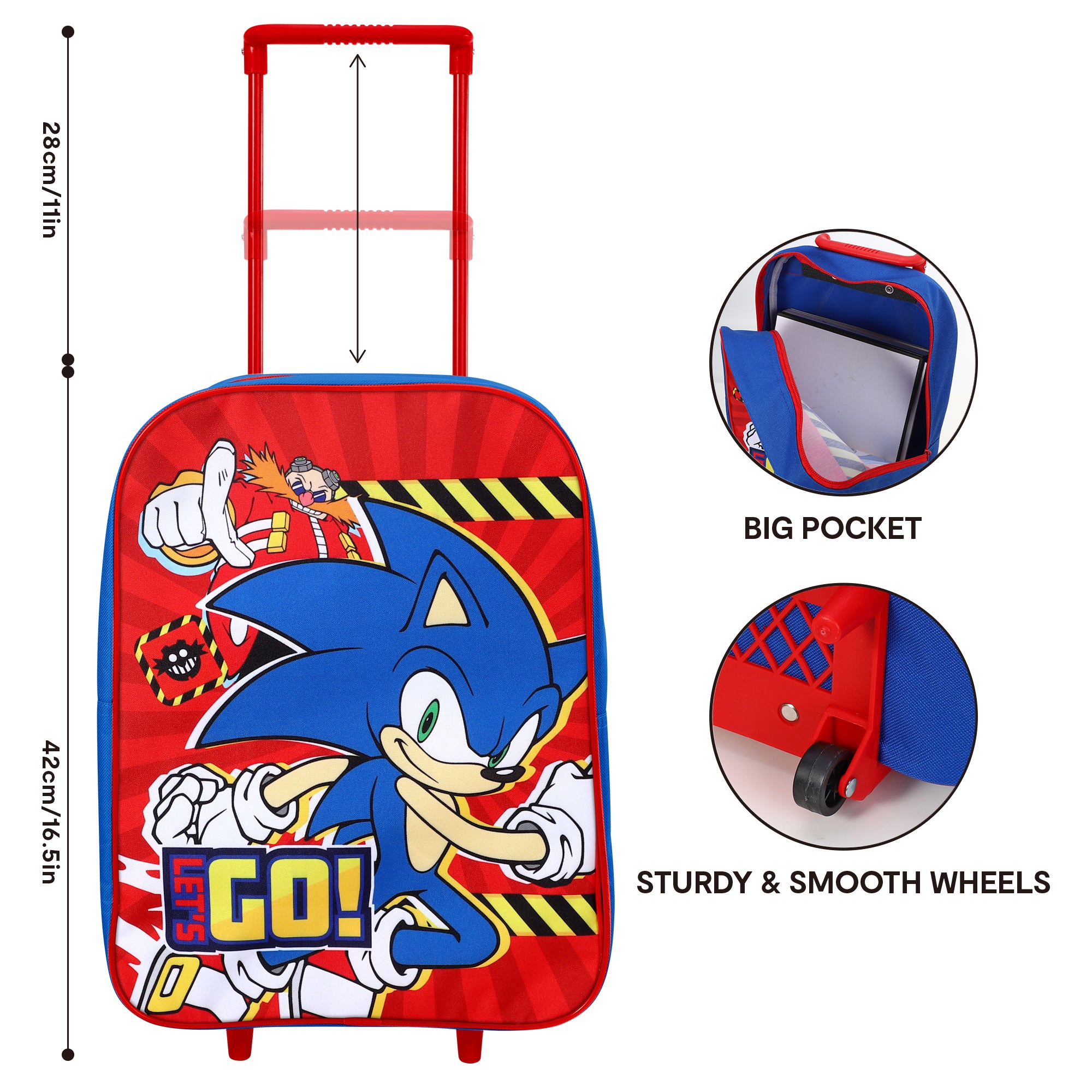 Pack like a pro with Sonic The Hedgehog "Let's Go" Travel Trolley Cabin Bag! This bold and spacious bag measures 42 x 29 x 14 cm, making it the perfect size for all your travel essentials. Take on new adventures and conquer the world with Sonic!