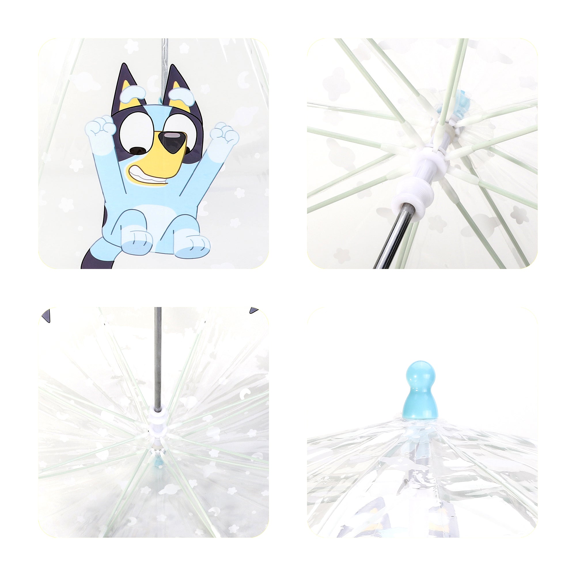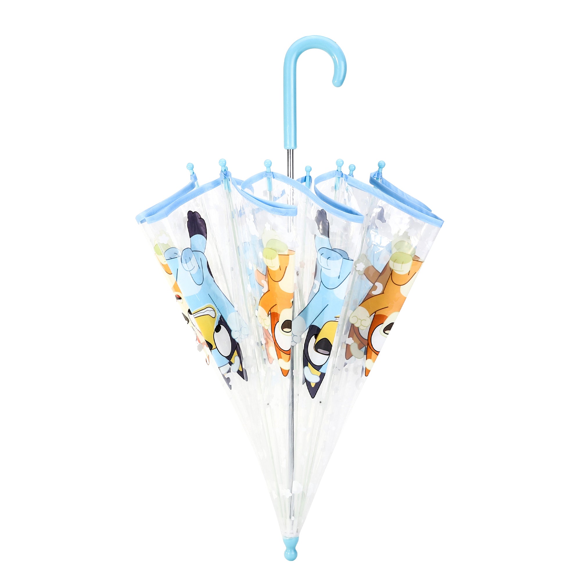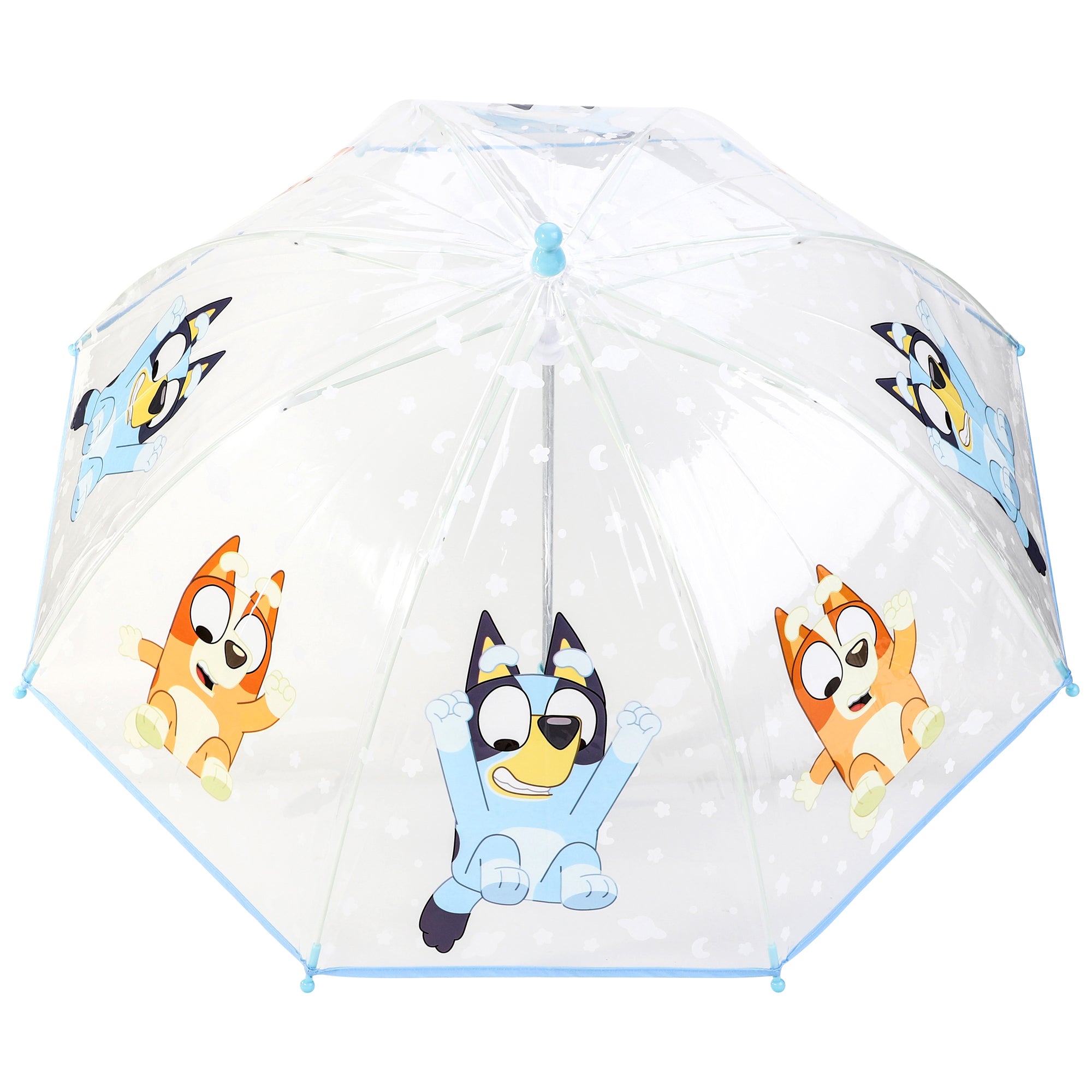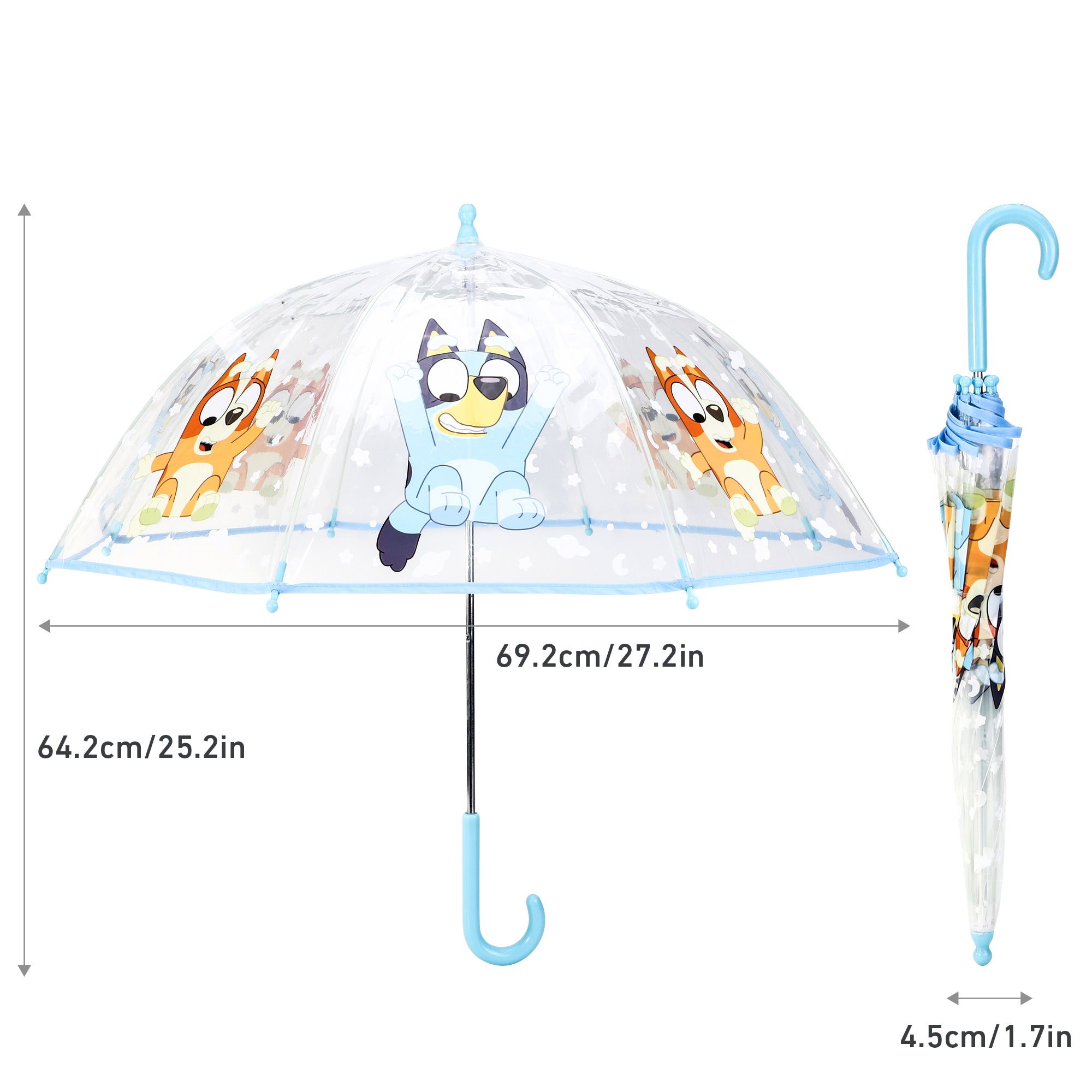 Keep little ones dry in style with the Bluey & Bingo Transparent Blue Character Dome Kids Umbrella! Standing 64cm tall with a 72cm diameter, this fun dome-shaped umbrella features vibrant Bluey and Bingo designs that kids will love. Its transparent blue canopy lets them see through while staying protected from the rain, making every rainy day an adventure. Perfectly sized for small hands, it’s a cheerful companion for any weather!