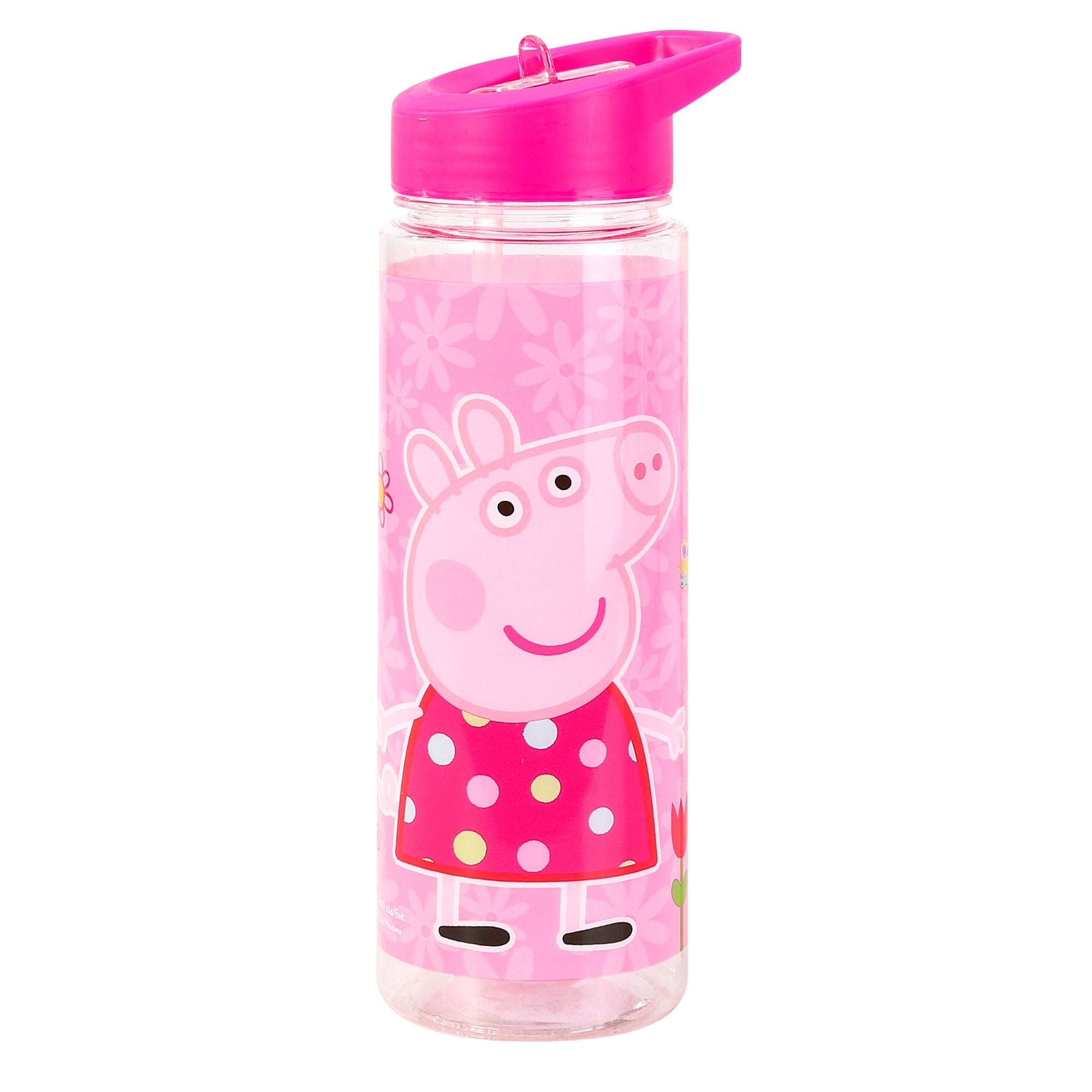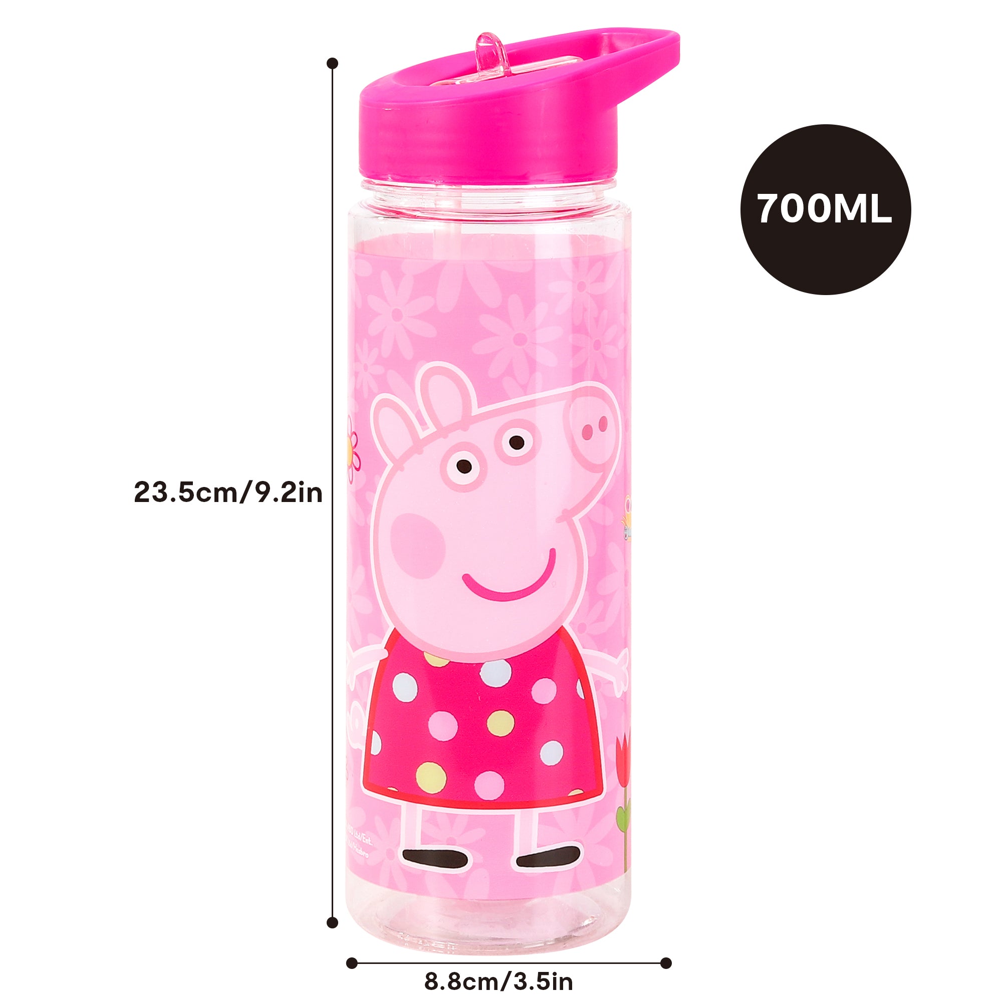 Stay hydrated with this adorable Peppa Pig plastic bottle! Perfect for on-the-go, it features a fun pink Peppa print and a convenient straw. With a capacity of 700ml, you'll have plenty of water to last you throughout the day. Keep it cute and quirky with Peppa Pig!